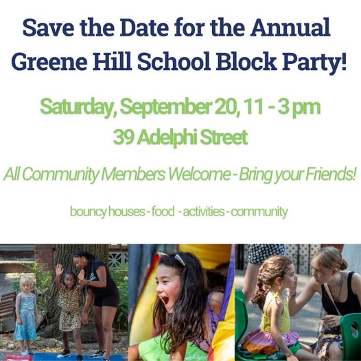 Save the date for our back-to-school Block Party on Saturday, September 20! Highlights include a bouncy house, face painting, activities from community partners, books for sale, and light refreshments. Bring your friends and help us kick off the year! (fb)