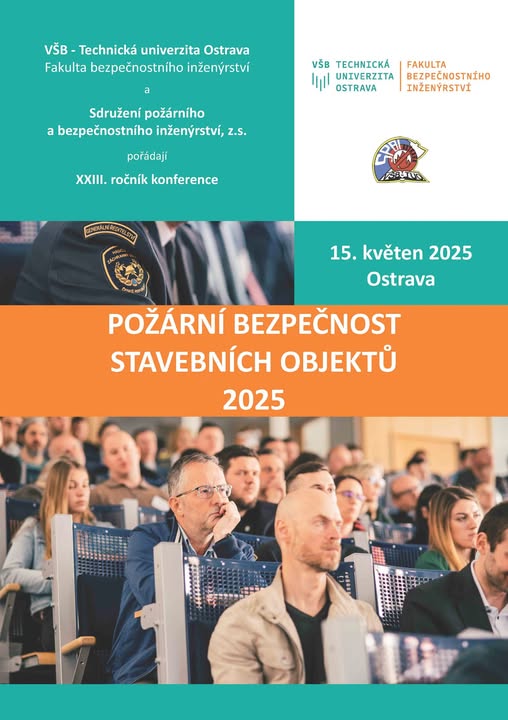 Dovolujeme si Vás srdečně pozvat na konferenci Požární bezpečnost stavebních objektů 2025, jejíž XXIII. ročník se koná dne 15. květena 2025 v Ostravě, ve spolupráci s Fakultou bezpečnostního inženýrství, VŠB-TUO. Místo konání: Aula Fakulty bezpečnostního inženýrství, VŠB-TUO, Lumírova 13, 700 30 Ostrava - Výškovice Další informace naleznete na webových stránkách www.spbi.cz (fb)