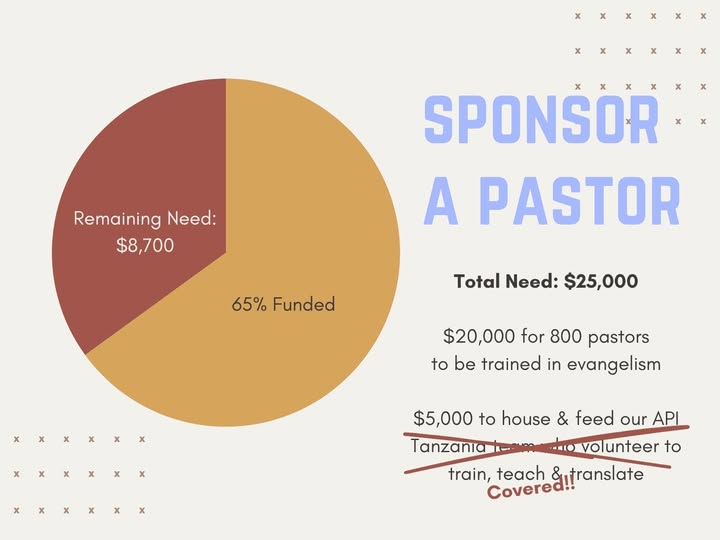 WOW - in only one day we've gone from a large five-figure remaining need to a four-figure remaining need! We are now 65% funded, praise the Lord! Help us close the gap by getting the last 348 pastors sponsored for $25 each. Donate today at: https://shorturl.at/dIg1z (fb)