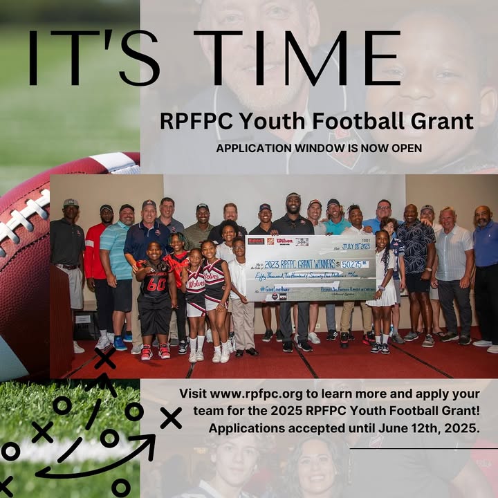 It’s that TIME 🏈 Our 2025 RPFPC Youth Football Grant Application window is now OPEN! Every year our team is blessed to be able to give back to some very special young smiles and talent. Submit your team and learn more at www.rpfpc.org. #RPFPC #NFLPAchicago (fb)