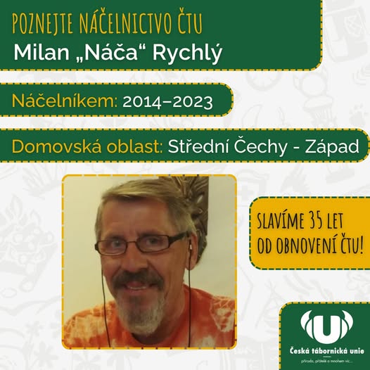 Post předposledního náčelníka, který byl tváří České tábornické unie, zastával Milan Rychlý, v tábornickém světě však známější pod přezdívkou Náča. Pod jeho vedením se podařilo udržet směřování ČTU ve správných kolejích. Toto prověřily i dlouhé pandemické roky, které organizace úspěšně překonala a po jejich skončení se mohla opět vydat cestou dalšího rozvoje. (fb)