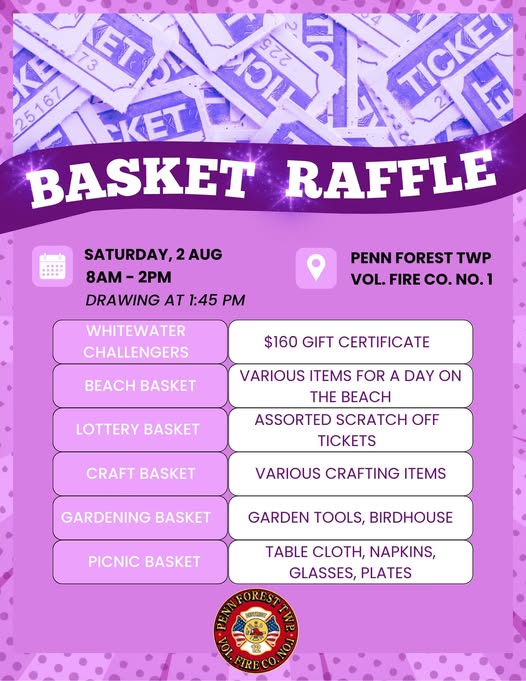 EVENT REMINDER: Annual Flea Market and Basket Raffle is being held this weekend at the fire house! Rain or shine, kitchen will be selling breakfast and lunch items! (fb)