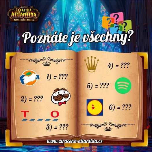 Poznáte je všechny❓😅 👉 V těchto dnech tvoříme ty nejrůznější kvízy pro děti na naše tábory. My vám zde přinášíme malou ochutnávku z našeho logo kvízu... tak co, poznáte je všechny bez nápovědy❓🤔 Dejte nám vědět do komentáře 👇👇 #Kvízy #NovéHry #LogoKvíz (fb)