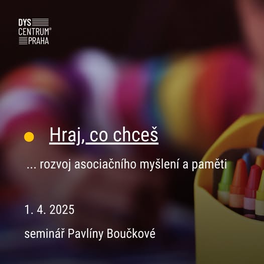 🔥 Jak rozvíjet verbální dovednosti dětí hravě, a ne těžkým drilem? 🔥 Jak zároveň potrénovat paměť a slovní zásobou? Kreativitou a zároveň praktickými tipy prošpikovaný seminář Pavlíny Boučkové je další z řad našich stálic. Během jednoho dne načerpáte inspiraci na měsíce, jak pracovat ✅ s pamětí, ✅ logikou, ✅ myšlením, ✅ vyjadřováním, ✅ soustředěním, ✅ slovní zásobou. Naše semináře jsou ověřené prakticky i akademicky – abyste se cítili profesně jistěji a vybaveněji. Kdy a kde? ★ 1. 4. 2025 od 9 do 15 hod. ★ DYS-centrum Praha, Stejskalova 192/9, Praha 8 ★ pro učitele MŠ a 1. stupně ZŠ, speciální pedagogy a psychology, pracovníky ŠPZ Přihlášení >> https://www.dyscentrum.org/hraj-co-chces-rozvoj-asociacniho-mysleni-a-pameti Těšíme se na vás! (fb)