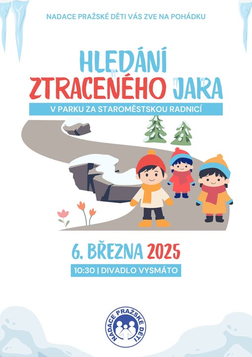 S příchodem března se vrací naše pravidelné kulturní programy pro mateřské školy z Prahy 1. 🥳 Naší první letošní pohádkou je tematicky Hledání ztraceného jara v podání Divadla Vysmáto. Tak za námi s dětmi dorazte do parku za Staroměstskou radnicí. Těšíme se na Vás 💙🤍 (fb)
