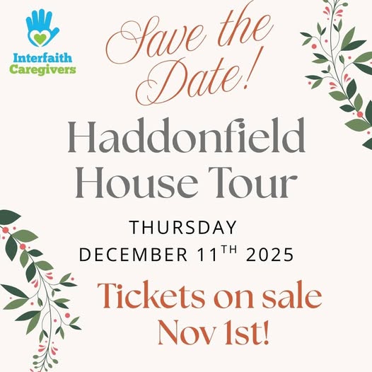 It's here! Everyone's favorite annual tradition, the Interfaith Caregivers Haddonfield House Tour! Join us Thursday, December 11th for a self-guided tour of five lovely homes around Haddonfield. Tickets can be purchased at www.GiftOfALift.org or by visiting our office at 20 Chestnut Street in Haddonfield, Monday - Friday 9am - 3pm. (fb)
