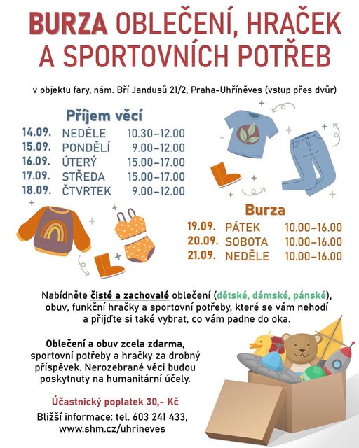 Také letos pořádáme podzimní burzu oblečení, hraček a sportovních potřeb 🤗 (fb)