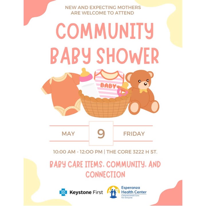 Join Esperanza and our partners Keystone First for a Community Baby Shower on May 9th from 10 am to 12 pm at The CORE (3222 H Street)! 🍼✨ We’re coming together to celebrate, connect, and support new and expecting parents with tons of resources, education, and fun. This event is free and welcome to families! (fb)