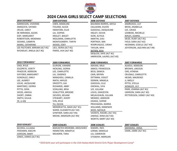Congratulations to all of the players selected this past weekend at the CAHA Girls Select Camp! These players will represent California at the Pacific District Development Camp in Las Vegas May 2nd - 5th. Good luck to all! (fb)