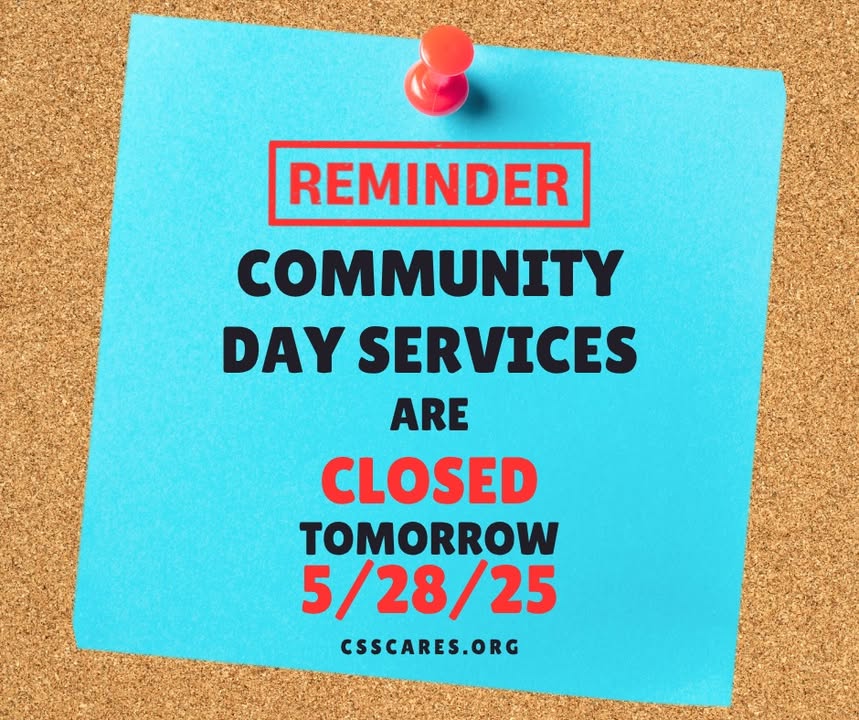 This is a reminder to those who attend CSS Day Programs in Teutopolis that our Community Day Services will be closed on Wednesday, May 28th, for a staff in-service training day. Day Programs will reopen on Thursday, May 29th. (fb)