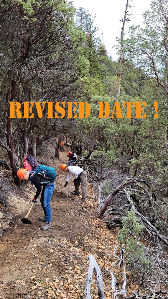 DATE CHANGE! Due to scheduling conflicts, our last regular trail work party of the 2024-2025 winter season has been changed to SUNDAY, April 27, 2025. (note: Sunday, NOT our usual Saturday work party). Mark your calendars, and watch email and website for details as the date nears. (fb)